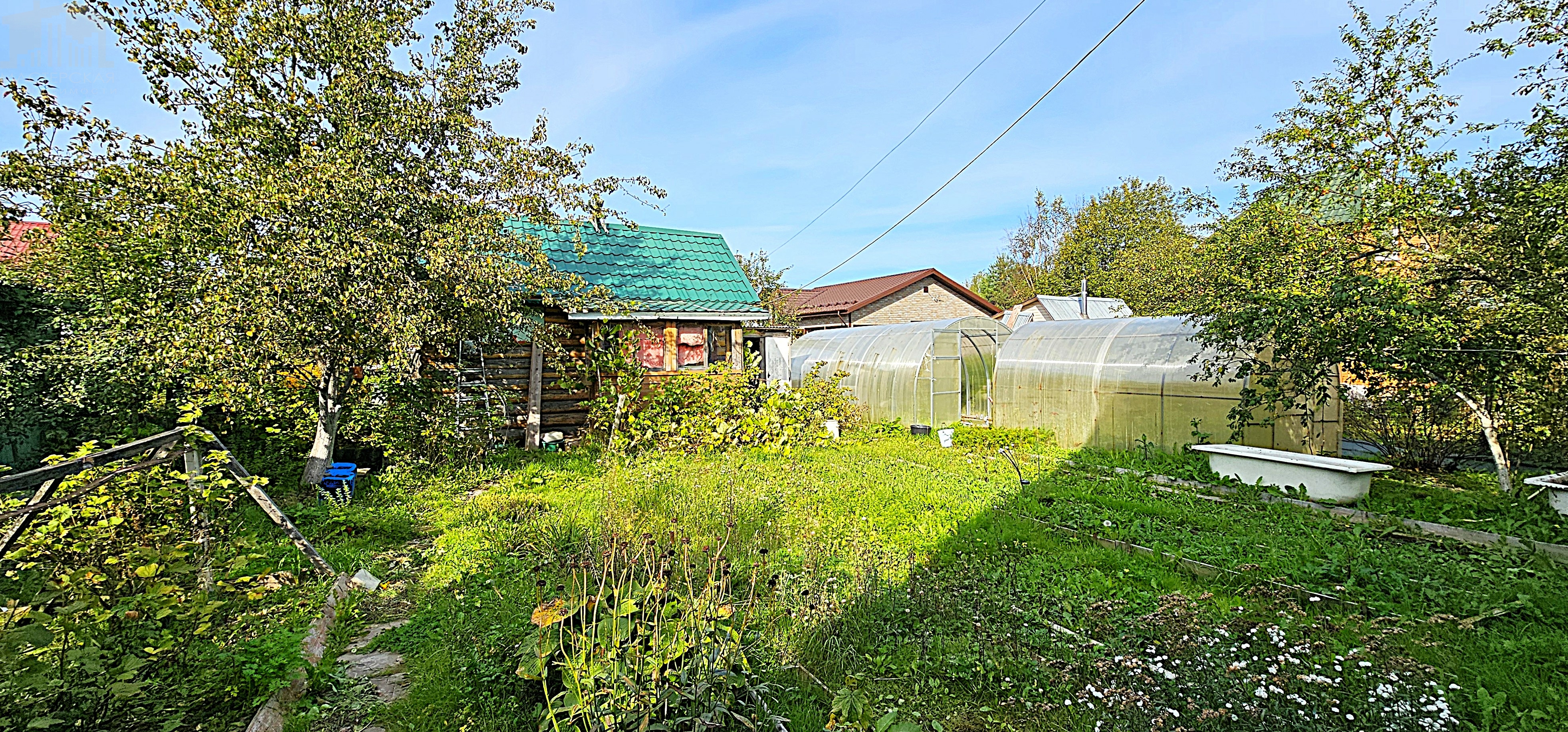 Земельный участок общей площадью 565 м2 правильной формы. Богатый на урожай плодово-ягодный сад с двумя теплицами. Есть баня и хозпостройки.
