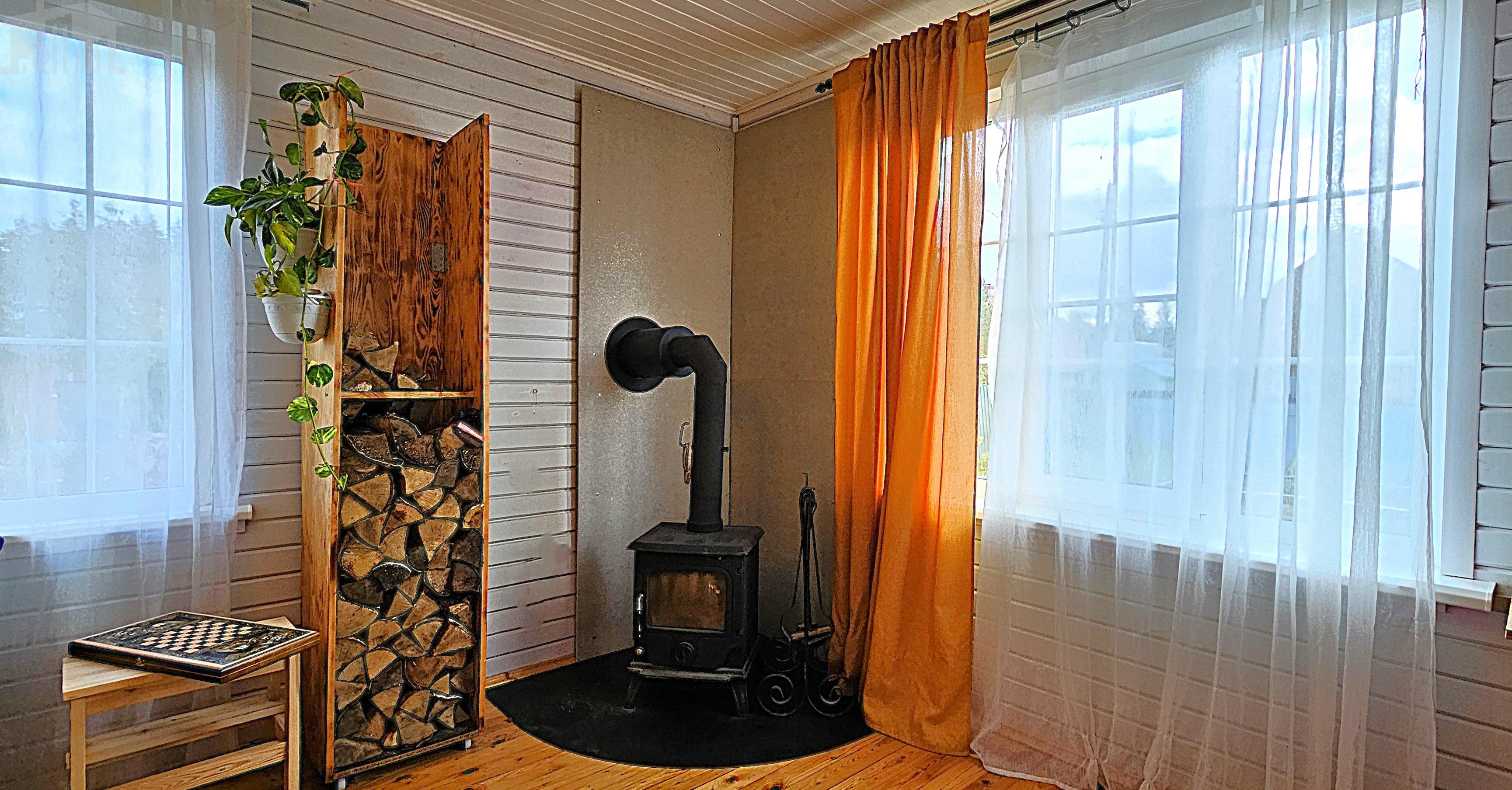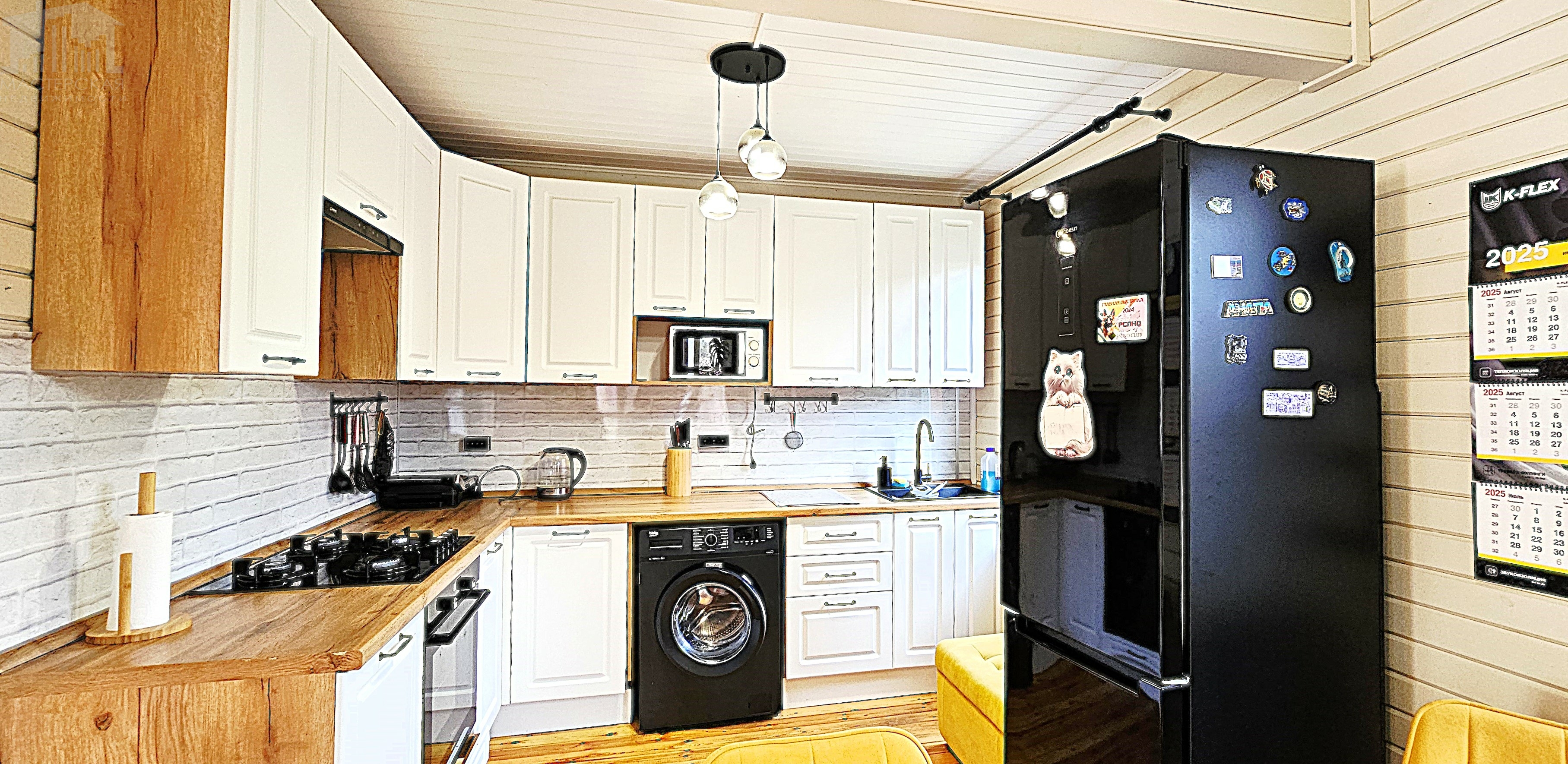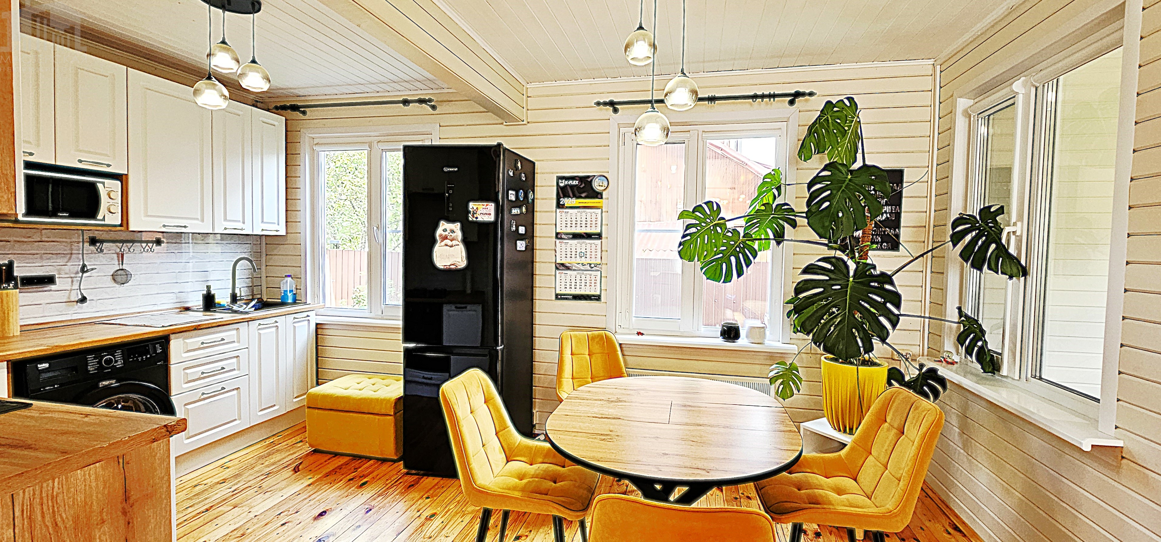 Общая площадь 131,1 м2 функциональной планировки: 4 изолированные комнаты (10,6+11,6+15,5+15,5м2), просторная кухня – гостиная (34 м2) с печью камином. Кухня укомплектована всей необходимой техникой (посудомоечная и стиральная машинки, холодильник, СВЧ, духовой шкаф и варочная газовая панель). Санузел в доме.